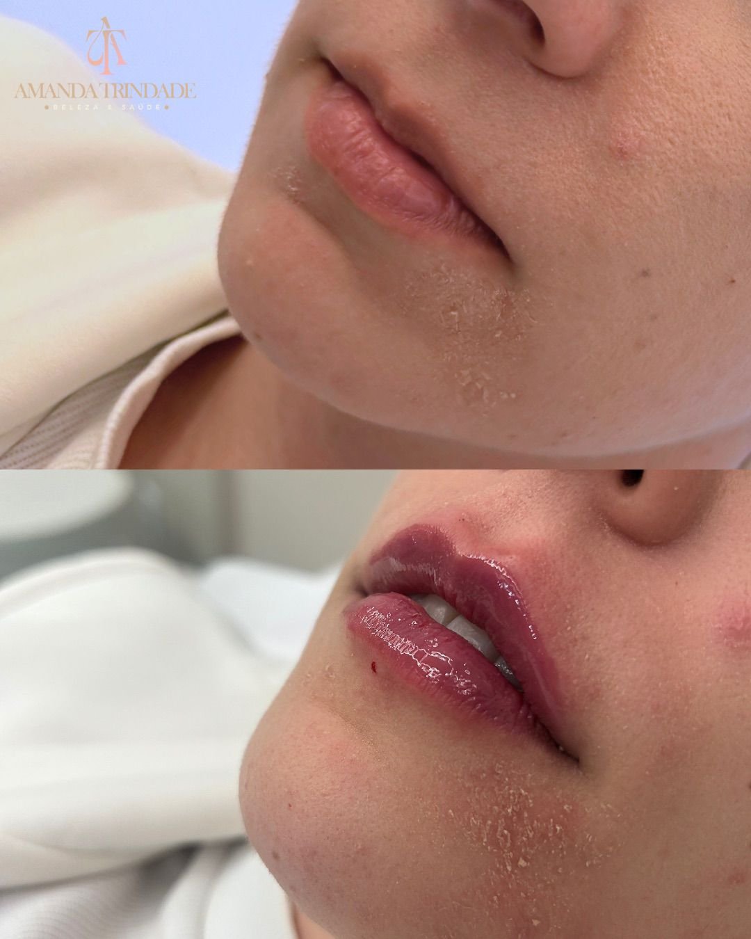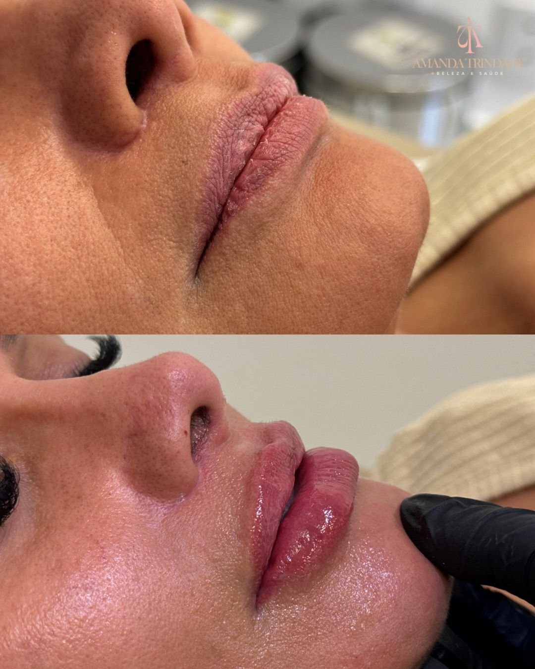Preenchimento labial para lábios volumosos e naturais, realçando sua expressão e sensualidade.