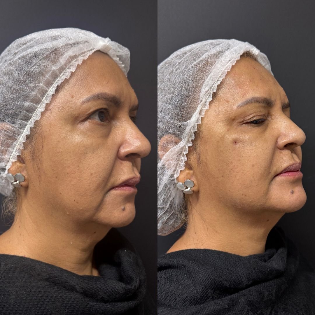 Sustentação facial com fios de PDO, para levantar e redefinir contornos com naturalidade e durabilidade ale de estimular colágeno.